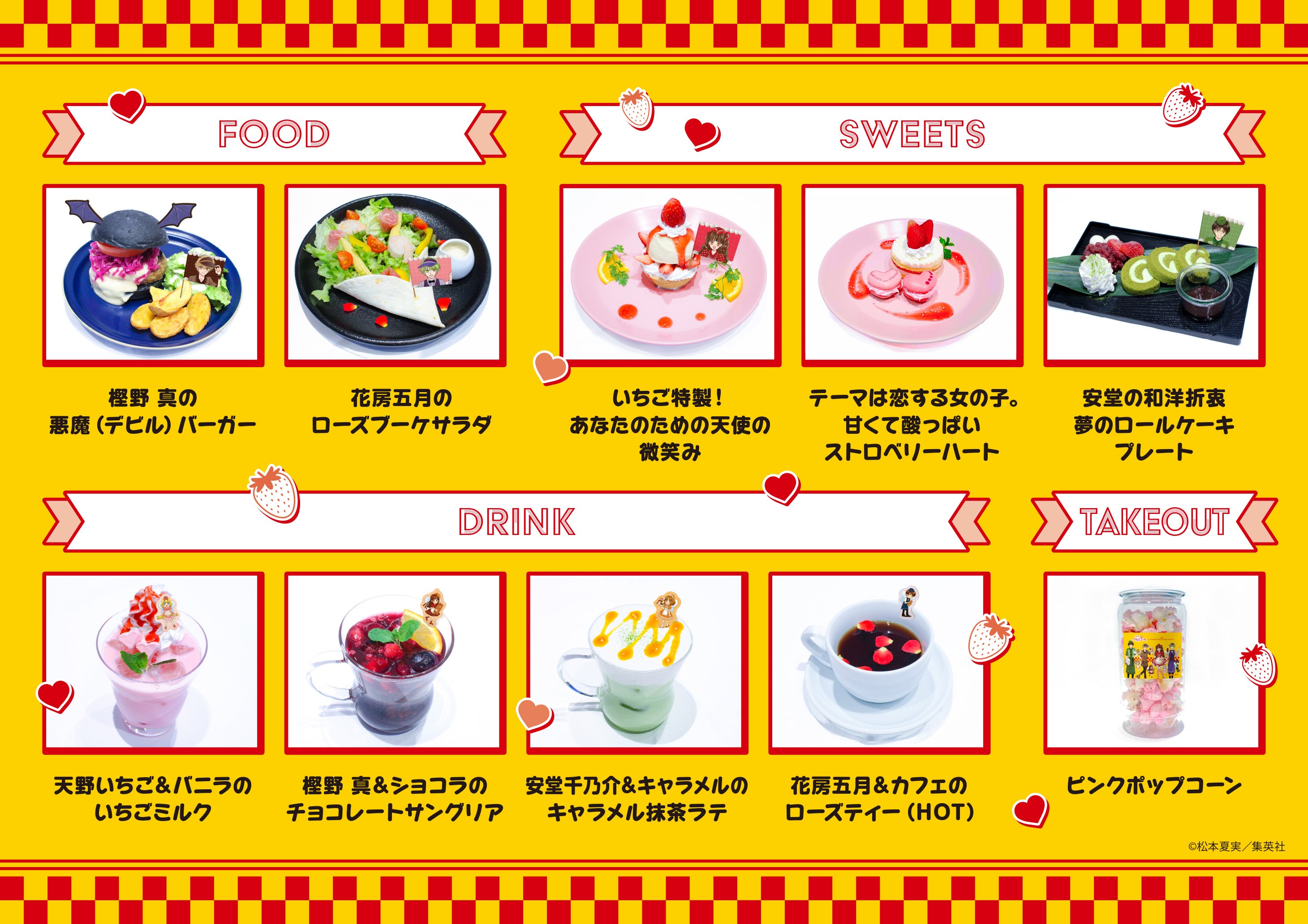 今回のイベントに向けて、作品をイメージしたコラボメニューや、松本夏実先生による「ダイナー」がコンセプトの新規描き下ろしイラストを使用したグッズを多数ご用意。