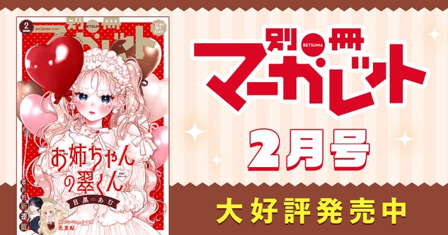 「別冊マーガレット」2月号は、北里鮎先生の新連載『ストロベリィ・ケイク』が巻頭カラー65P!★人気連載ダブル応募者全員プレゼント! MC『君を忘れる恋がしたい』7巻連動!志乃の描きおろし全身アクスタ MC『お姉ちゃんの翠くん』10巻連動!選べるクリアカードセット2種 ★表紙&センターカラー39P『お姉ちゃんの翠くん』目黒あむ ★別マBABY2月号『恋する向日葵はわきまえない』泉麦歩 ほか